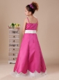 Hot Pink And White A-Line Straps Satin Hand Made Flowers Beautiful Flower Girl Dress