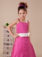 Home >  Shop By Color >  Bridesmaid Dresses by Colors >  White Bridesmaid Dresses > Hot Pink And White A-Line Straps Satin Hand Made Flowers Beautiful Flower Girl Dress