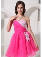 Home >  Special Occasion Dresses >  Homecoming Dresses > Hot Pink Appliques Strapless A-line Organza Stylish Prom Gowns For Customize