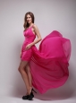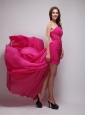 Home >  Prom Dresses >  Sexy Prom Dresses > Hot Pink Asymmetrical One Shouleder Brush Train Chiffon Beading Prom / Evening Dress