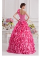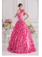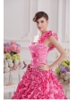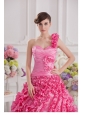 Home >  Quinceanera Dresses >  Luxurious Quinceanera Dresses > Hot Pink Ball Gown One Shoulder Taffeta Hand Made Flowers and Ruffles Quinceanera Dress