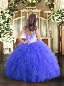 Home >  Special Occasion Dresses >  Beautiful Kids Pageant Dresses > Hot Pink Ball Gowns Straps Sleeveless Tulle Floor Length Lace Up Beading and Ruffles Pageant Dress for Teens
