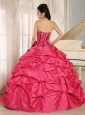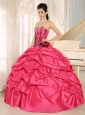 Hot Pink Beaded and Hand Made Flowers Quinceanera Dress With Pick-ups For Custom Made  In Kapaa City Hawaii