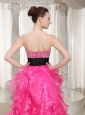 Hot Pink Beaded Belt Embellishment Evening Dress With High-low