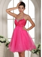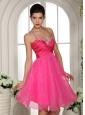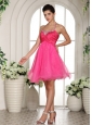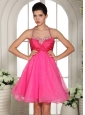 Home >  Special Occasion Dresses >  Homecoming Dresses > Hot Pink Beaded Spaghetti Straps Halter Prom Dress Knee-length
