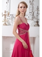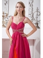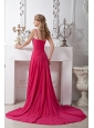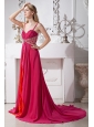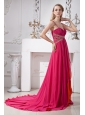 Hot Pink Chiffon Spaghetti Straps Prom Dress Empire Brush Train Beading