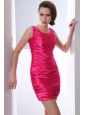 Home >  Special Occasion Dresses >  Cocktail Dresses > Hot Pink Column Scoop Cocktail Dress Taffeta Ruch Mini-length
