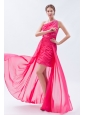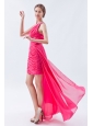 Hot Pink Column / Sheath One Shoulder Prom Dress High-low Chiffon Sequins