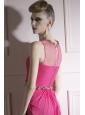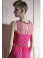Hot Pink Column / Sheath Scoop Floor-length  Beading Prom / Evening Dress