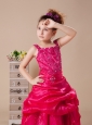 Hot Pink Column / Sheath Strap Beaded Decorate Shoulder Flower Girl Dress