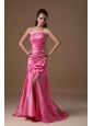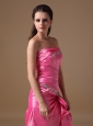 Home >  Prom Dresses >  Best Prom Dresses > Hot Pink Column Strapless Brush Train Taffeta Beading Prom Dress