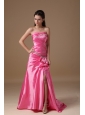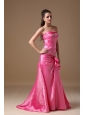 Hot Pink Column Strapless Brush Train Taffeta Beading Prom Dress