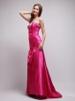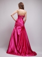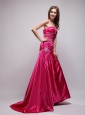 Hot Pink Column Sweetheart Brush Train Taffeta Beading and Ruch Prom Dress