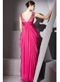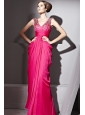 Hot Pink Column V-neck Floor-length Chiffon Beading Prom / Evening Dress