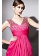 Home >  Prom Dresses >  Discount Prom Dresses > Hot Pink Column V-neck Floor-length Chiffon Beading Prom / Evening Dress