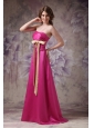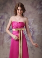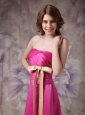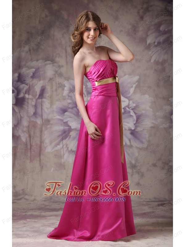 Simple while gorgeous! This hot pink prom dress is the best way to show girl's shy beauty. Sexy strapless design does not lack of stability and sex yet elegance. Exquisite ruchings throughout the whole bodice adds more retouch, while together with the chic bow sash in a contrasting color, which can conture your slim figure. The floor length skirt flows freely to create a brush train in the back. A hidden zipper up completes this fabulous design.