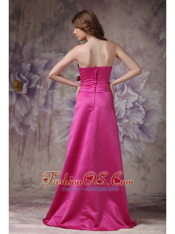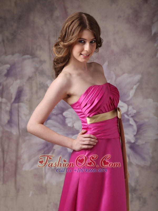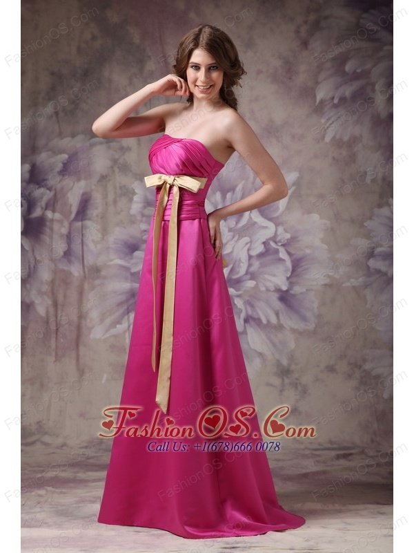 Hot Pink Elegant Bridesmaid Dress A-line Strapless Satin Ruch and Bows