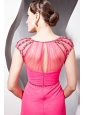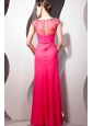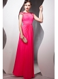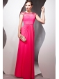 Hot Pink Empire High Neck Floor-length Chiffon Beading Prom Dress