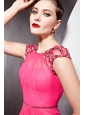 If you are looking for a charming dress that hugs your body and frames your curves beautiful – this hot pink dress is your best choose. Made from a beautiful chiffon fabric, it features a very charming neckline, looks like a round neckline but a lovely sweetheart neckline. The waistband is accent by a slimsy beading band.The empire style skirt flares out from the hips to the asymmetric hem. The zipper up on the back of the dress. So very elegant!