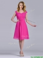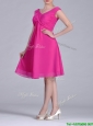 Hot Pink Empire Knee-length Chiffon Ruching Short Dama Dress for Graduation