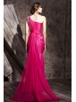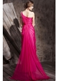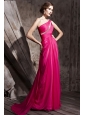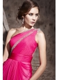 Hot Pink Empire One Shoulder Floor-length Chiffon Beading and Ruch Prom / Celebrity Dress