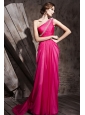 Home >  Prom Dresses >  Discount Prom Dresses > Hot Pink Empire One Shoulder Floor-length Chiffon Beading and Ruch Prom / Celebrity Dress