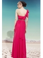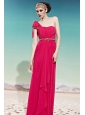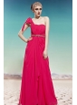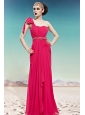 Hot Pink Empire One Shoulder Floor-length Chiffon Ruch Prom Dress