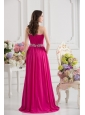 Home >  Prom Dresses >  Modest Prom Dresses > Hot Pink Empire Strapless Ruching Beading Brush Train Prom Dress