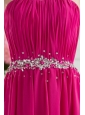Hot Pink Empire Strapless Ruching Beading Brush Train Prom Dress