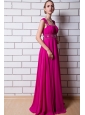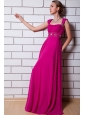 Hot Pink Empire Straps Prom Dress Chiffon Beading Floor-length