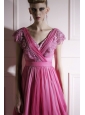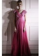 Hot Pink Empire V-neck Floor-length Chiffon Appliques and Ruch Prom / Celebrity Dress
