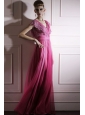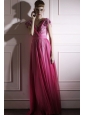 Home >  Prom Dresses >  Discount Prom Dresses > Hot Pink Empire V-neck Floor-length Chiffon Appliques and Ruch Prom / Celebrity Dress