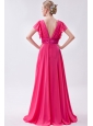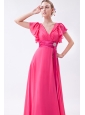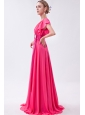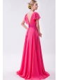 Hot Pink Empire V-neck Prom Dress Chiffon Ruch Brush Train
