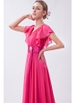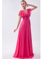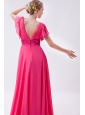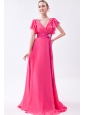 Home >  Prom Dresses >  Modest Prom Dresses > Hot Pink Empire V-neck Prom Dress Chiffon Ruch Brush Train