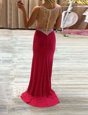 Hot Pink Formal Evening Gowns V-neck Sleeveless Brush Train Zipper