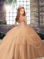 Hot Pink Halter Top Lace Up Beading Kids Formal Wear Sleeveless