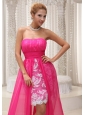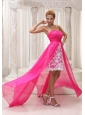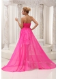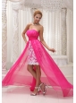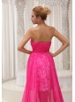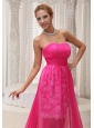 Hot Pink High-low Prom Dress For 2013 Ruched Bodice Chiffon Strapless Lace