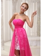 Home >  Prom Dresses >  High Low Prom Dresses > Hot Pink High-low Prom Dress For 2013 Ruched Bodice Chiffon Strapless Lace