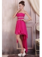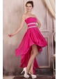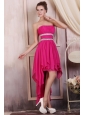 Hot Pink High-low Prom Dress with Beading and Ruching