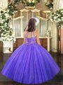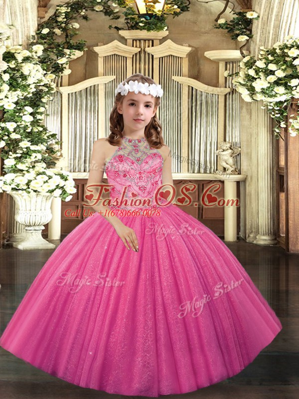 Hot Pink Lace Up Kids Pageant Dress Appliques Sleeveless Floor Length