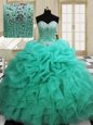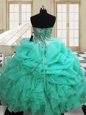 Hot Pink Lace Up Strapless Embroidery and Ruffles Quinceanera Dresses Organza Sleeveless