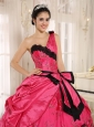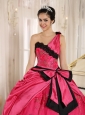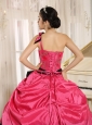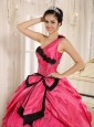 Hot Pink One Shoulder In Arcadia California For 2013 Quinceanera Dress With Bowknot and Appliques
