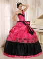 This graceful gown is just perfect for any would-be prom queen. It features a gorgeous one shoulder bodice that's embellished with intricate applique. The waist band is accented with exquisite bowknot. Layers of taffeta add a dimentional beauty to the already beautiful dress. The flower applique on the skirt upgrades your tastes and beautifies the dress. Close-fitting design of the dress undoubtedly expose your charming and slim figure. The popular lace up back completes the look.
