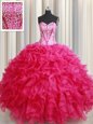 Home >  Quinceanera Dresses >  Unique Quinceanera Dresses > Hot Pink Organza Lace Up Sweetheart Sleeveless Floor Length 15 Quinceanera Dress Beading and Ruffles