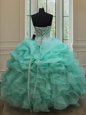 Hot Pink Organza Lace Up Sweetheart Sleeveless Floor Length Quince Ball Gowns Beading and Ruffles
