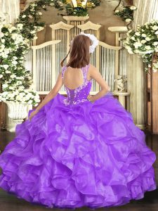 Home >  Special Occasion Dresses >  Lovely Little Girl Pageant Dresses > Hot Pink Organza Lace Up V-neck Sleeveless Floor Length Kids Pageant Dress Beading and Ruffles