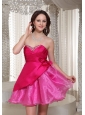 Hot Pink Organza Mini-length Sweetheart For Prom / Cocktail  Dress With Beading Decorate