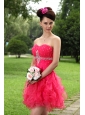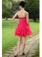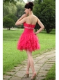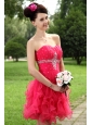 Hot pink Princess Sweetheart Prom / Homecoming Dress Organza Beading Mini-length