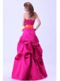 Hot Pink Prom Dress With Orange Sash and Pick-ups A-line Floor-length
