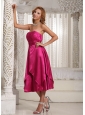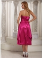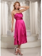 Home >  Special Occasion Dresses >  Mother of the Bride Dresses > Hot Pink Ruched Bodice Tea-length Simple Mother Of The Bride Dress For Wedding Party